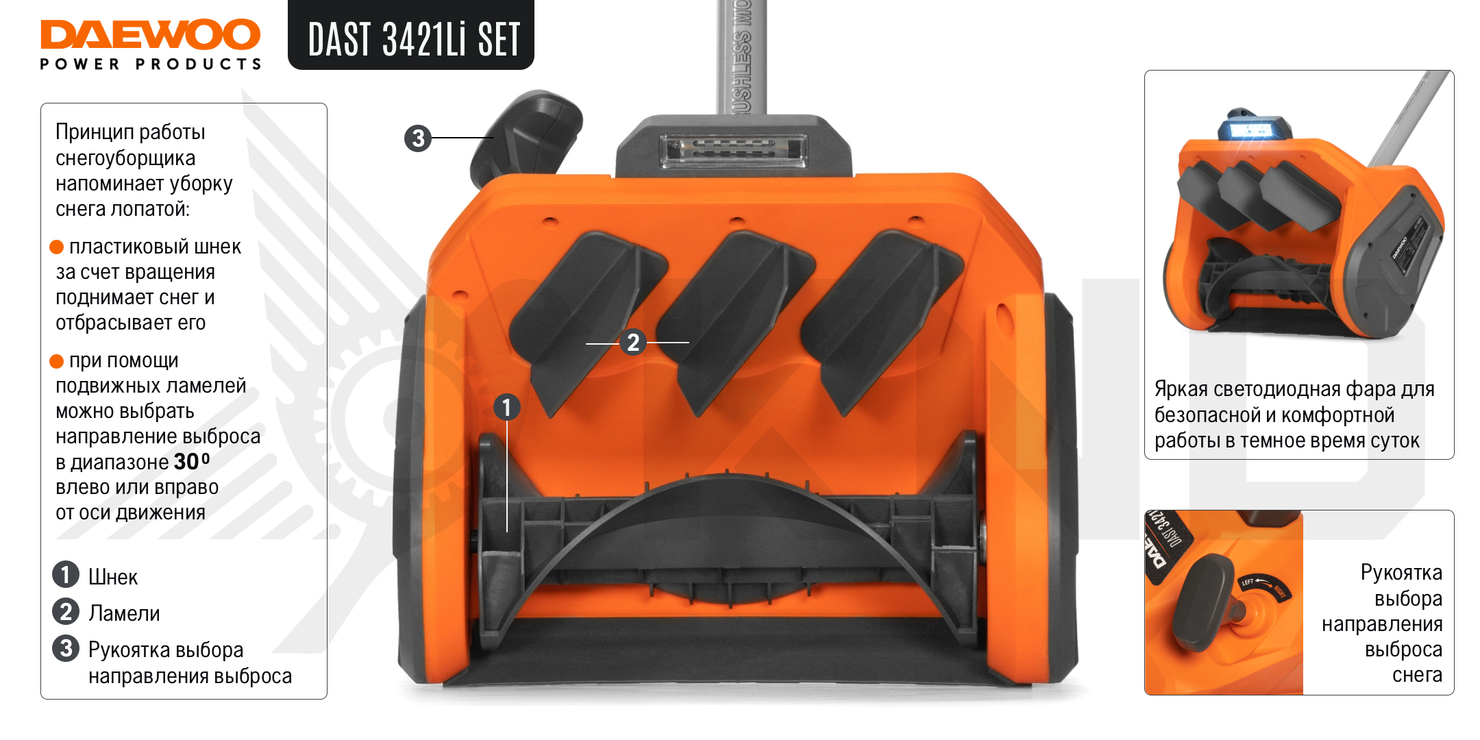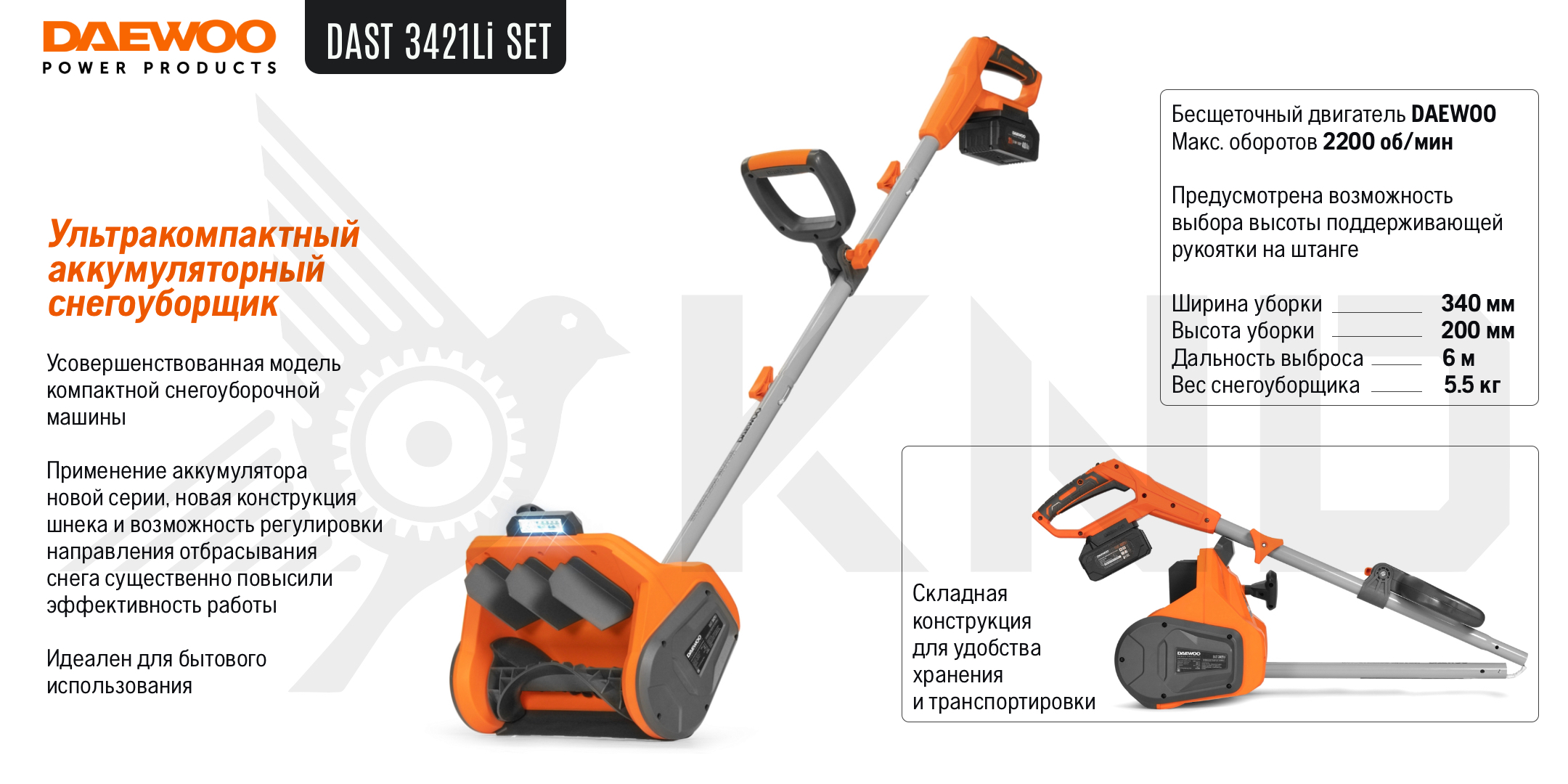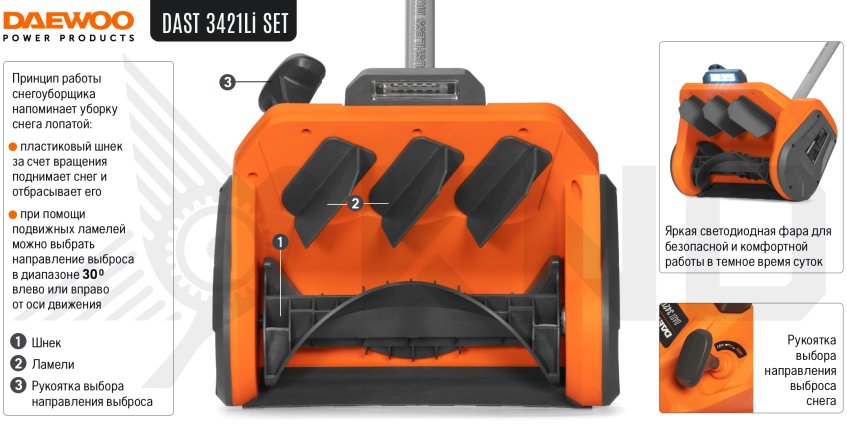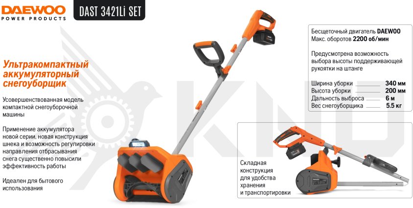 Аккумуляторный снегоуборщик DAEWOO DAST 3421Li SET с АКБ 4 Ач и ЗУ