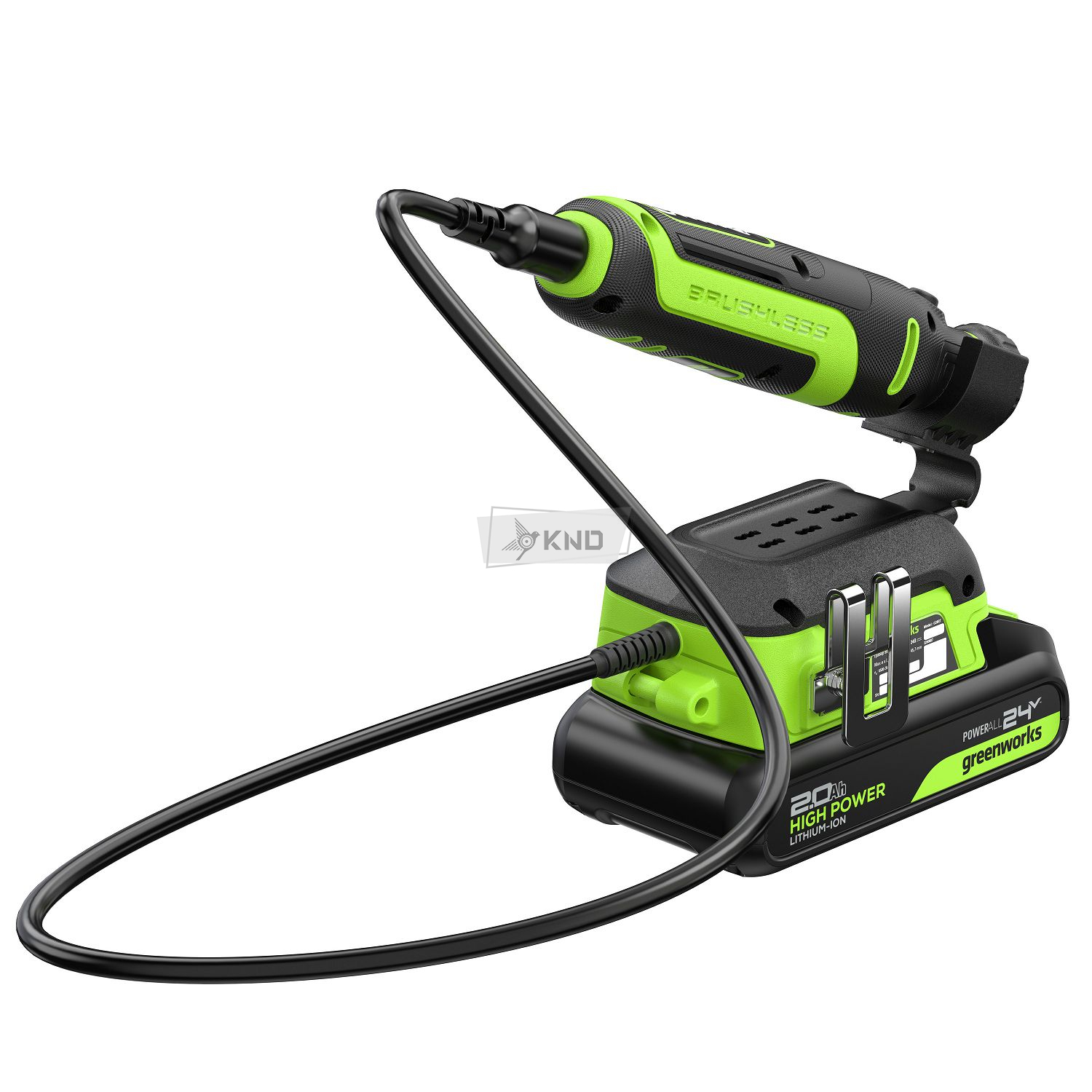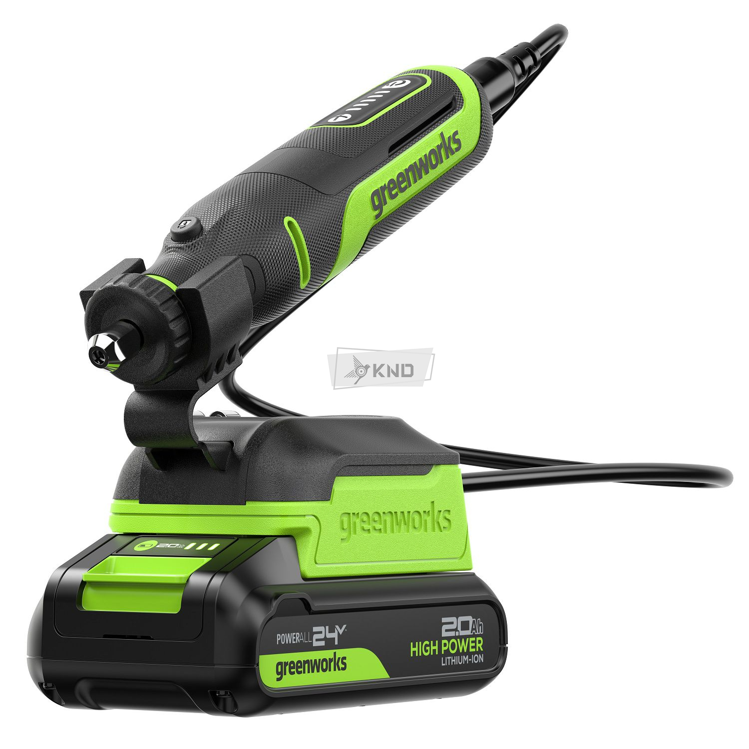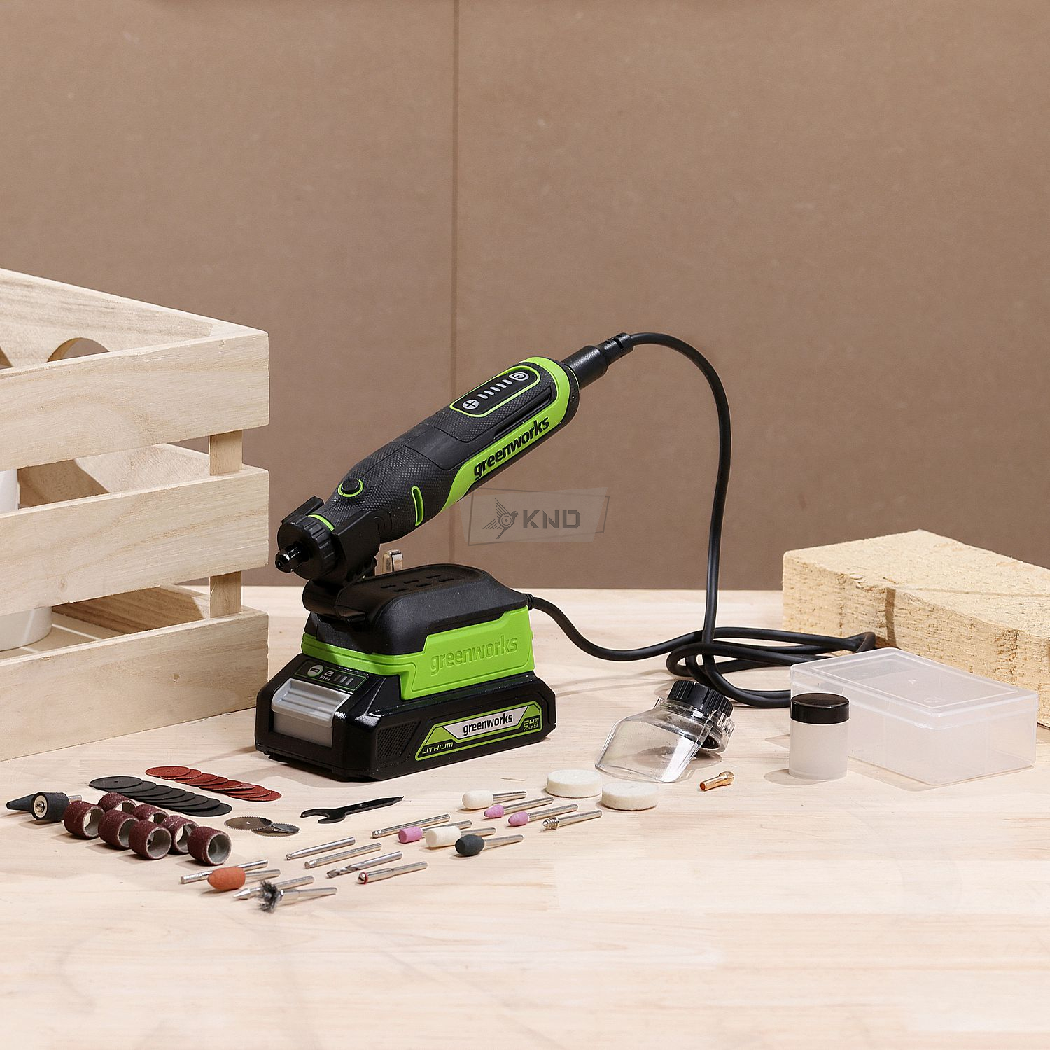 Гравер аккумуляторный Greenworks G24RT, 24В с принадл. 52 шт. с АКБ 2 Ач и ЗУ