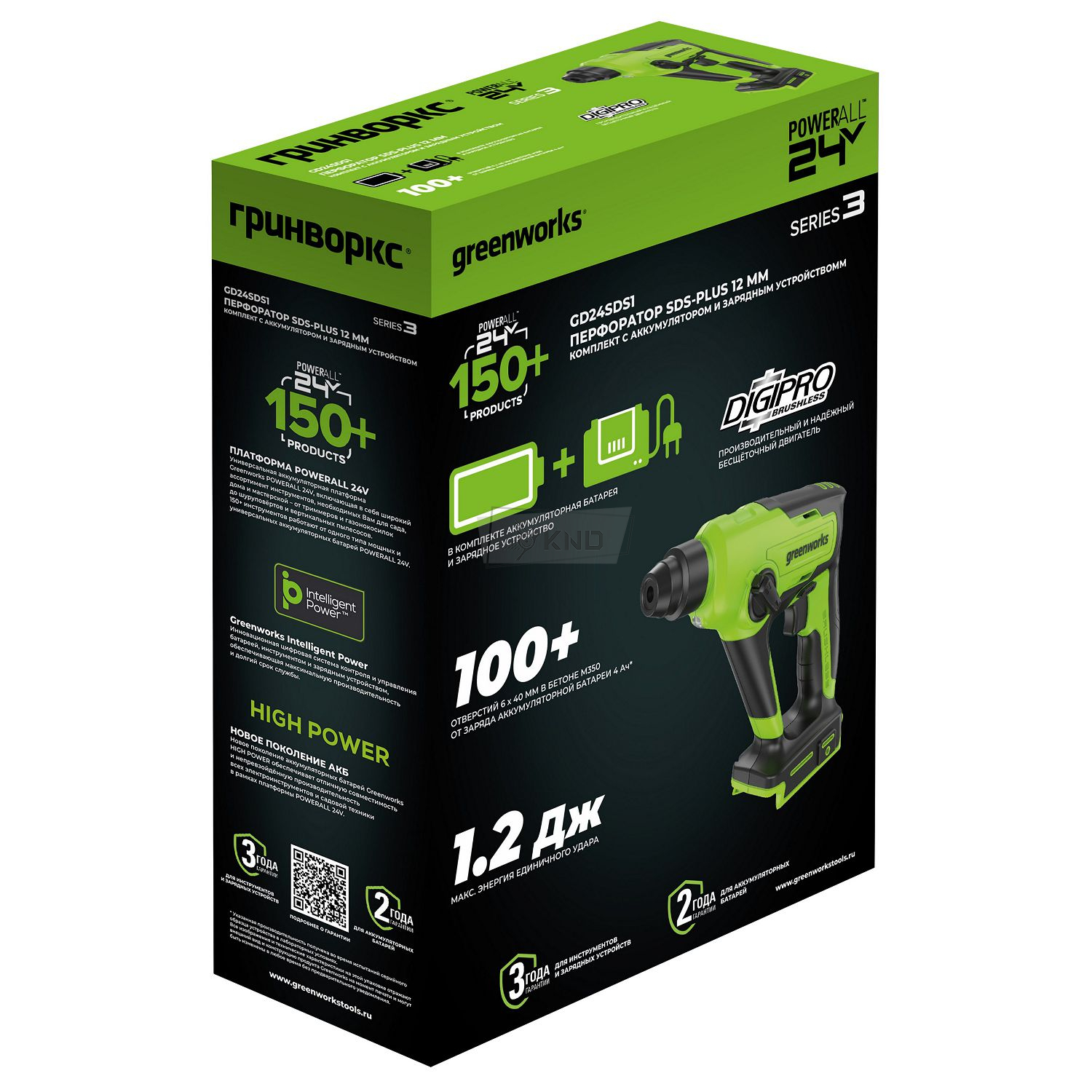 Перфоратор аккумуляторный Greenworks GD24SDS1 с АКБ 2 Ач и ЗУ