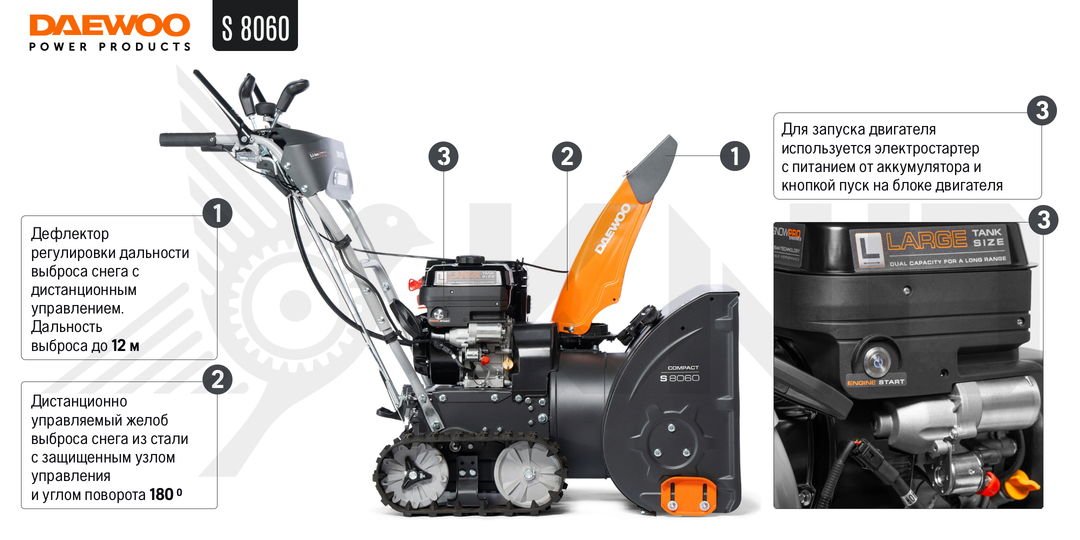 Только у нас снегоуборщик бензиновый DAEWOO S 8060 по самой доступной цене! На все товары распространяется гарантия от производителя. Оперативная доставка в Курске. Оформите заказ сейчас и специалисты интернет-магазина свяжутся с Вами в течение нескольких минут.Документация